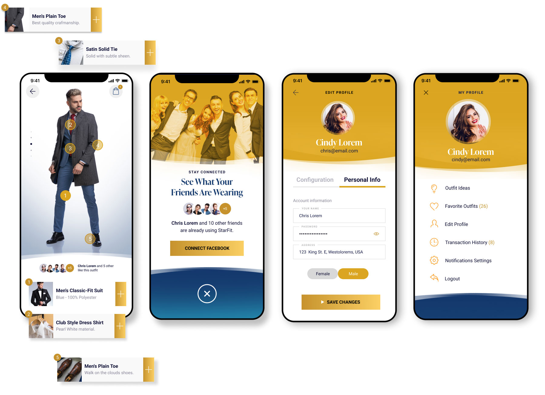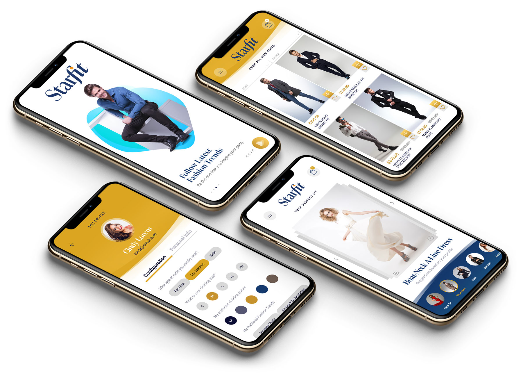 To design a new intelligent app called Starfit, based on your preferences, colours, textures, trends, and brands, we will deliver you clothing suggestions that fit your style and personality. The target of this project is to deliver high-quality services through and excellent presentation and approach.